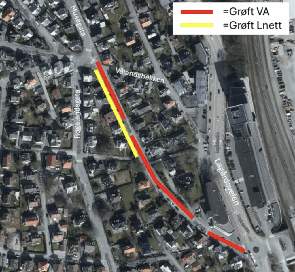 Arbeidet i gaten gjelder blant annet, utskifting av vannledning og etablering av sykkelfelt. Samtidig har nettselskapet Lnett skifte ut høyspentkabler i bakken i forbindelse med prosjektet.
