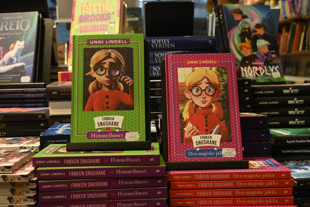 Tidligere i år ga Bonnier Norsk Forlag ut bok sammen med Unni Lindell, her er forsidebildet tydelig blitt generert av KI. Bonnier forlag har bekreftet til NRK at omslaget til bok nr. 2 i Lindells «Frøken Snushane» har blitt generert av KI. Dette skyldes at original illustratør Odin Helgheim ikke hadde kapasitet til å tegne omslaget.